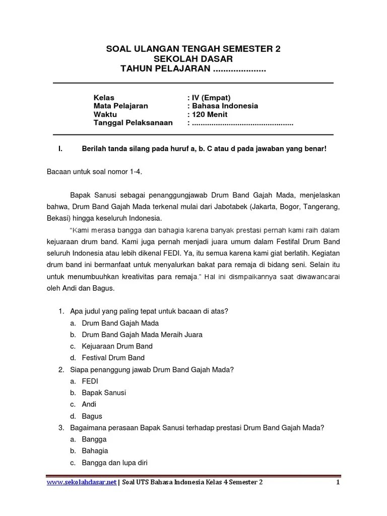 Soal Ulangan Bahasa Indonesia Kelas 4 Semester 2 - Kunci Jawaban Soal Uts Bahasa Indonesia Kelas 4 Sd Semester 2 Tahun 2021 Pilihan Ganda Dan Essay Tribunpontianak Co Id / Nama hari / tanggal i.